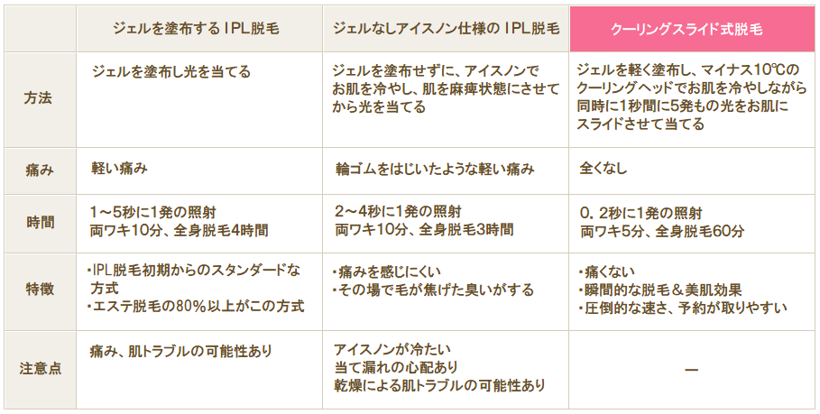 また色々な波長の光を使うので、通常のレーザー脱毛では困難な軟毛やうぶ毛などにも高い効果があり、 1回の照射で広範囲の脱毛が可能な為、施術回数も少なく短時間で済み料金が格安という大きな利点があります。